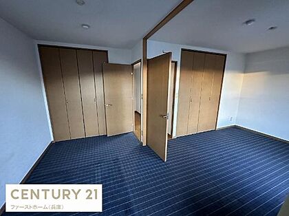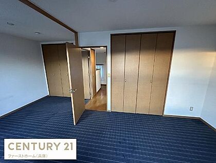 広々とした洋室で収納スペースが充実しています。シンプルな内装が特徴的で使いやすいレイアウトです。日当たりも良好な印象の空間です。床のデザインもおしゃれです。