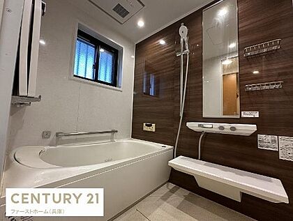 浴室には窓がありしっかりと換気が可能です。壁面のアクセントパネルが空間を引き締めます。ゆったりとしたバスタブが魅力です。お手入れしやすい床材が採用されています。シャワー設備も充実しています。