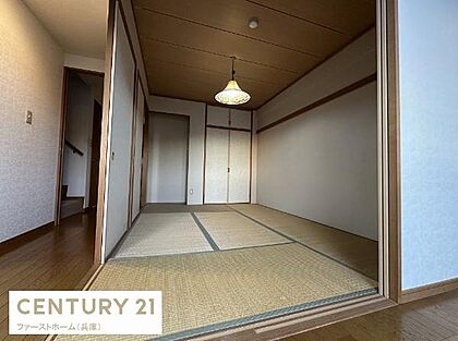 落ち着いた雰囲気の和室です。畳の温もりが感じられる空間。天井や照明も和の趣を演出。収納スペースも備わっています。隣室や廊下とのつながりも便利です。
