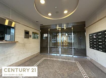 エントランスはガラス扉を採用し開放感があります。床のタイルデザインが目を引く空間です。集合ポストや宅配ボックスも設置されており利便性が高いです。照明が天井に設けられており明るい印象を与えます。