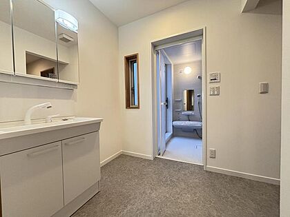 清潔感のある洗面脱衣室。朝の身支度や洗濯もゆったり行えます。