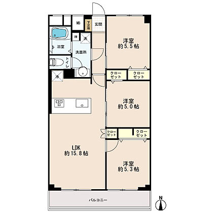 暖かい陽ざしが差込むバルコニー。晴れた日には、洗濯物が良く乾きます。風通しも良好です。