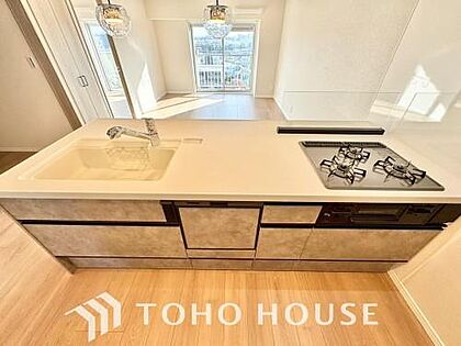 家族みんなでゆったりと調理や食事の準備ができる十分な広さを確保した、快適なキッチンスペース。