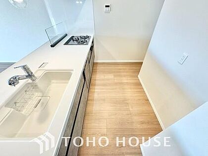 大型の冷蔵庫も配置できる広々としたキッチンスペースでお料理や家事をスムーズに進めることができます。