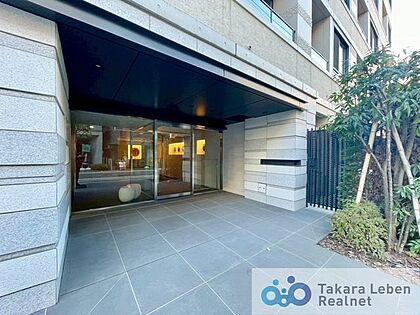 エントランス外部は、高級感のあるタイル貼りを採用した、落ち着いた外観デザイン。エントランスのサイドには植栽を配し、緑の潤いにあふれたアプローチを実現。