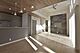 ワイドで収納豊富な三面鏡の洗面化粧台。洗面室には可動棚も設置されております。