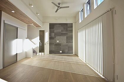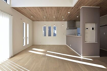 19.5帖のリビング。南側道路に面しており、明るい光がたっぷり差し込む空間です。
