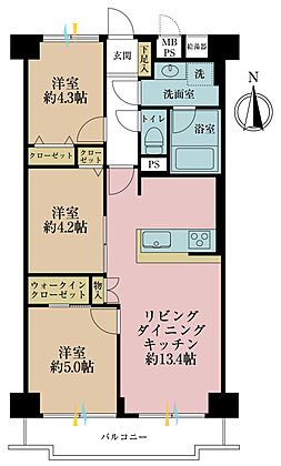 3LDK、専有面積59.92m2、バルコニー面積6.27m2