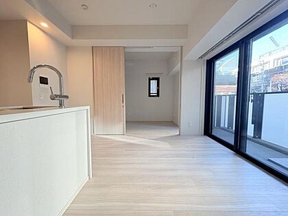 リビングに隣接する洋室の間仕切り扉を開けると開放感があります。