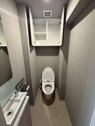 スタイリッシュなタンクレストイレ。すっきりと使いやすくお掃除しやすい快適なトイレ空間。