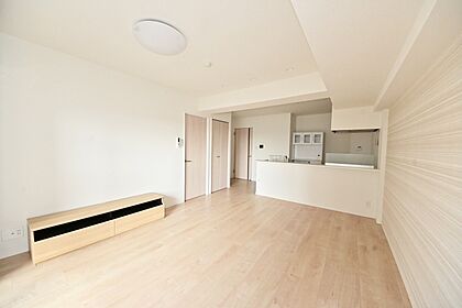 アクセントクロスが柔らかい印象をあたえる約14.9帖のLDK。あたたかみのある住空間です。