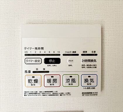 バスルームは便利な浴室乾燥機つき。乾燥、暖房、涼風、換気のモードが選べます。