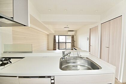 オープンなレイアウトで解放感のある対面キッチン。調理中もご家族との会話が弾みます。