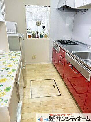 作業スペースと収納を確保した使い勝手の良いシステムキッチンです。