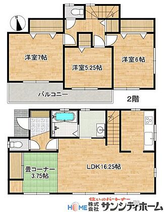 全室南向きの間取りは、温かい陽が入る明るい邸宅です。