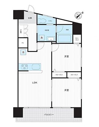 2LDK、専有面積47.58m2、南東向け角部屋