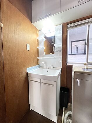 洗面の収納のほか上部に棚を備えているので、リネン等の収納に便利です。(2025年12月)撮影