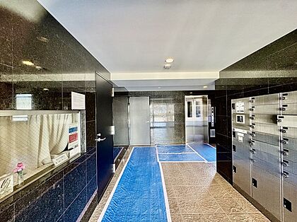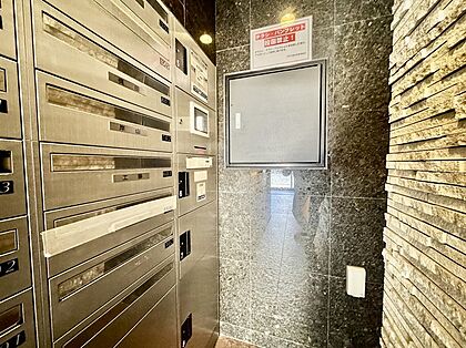 落ち着いた雰囲気のエントランス。オートロック式で防犯面にも配慮がなされ、宅配ボックスも備わっています。