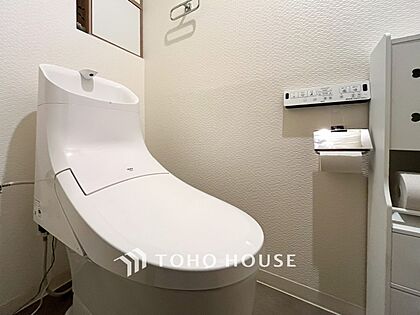 トイレはシンプルにホワイトで統一した温水洗浄付です。