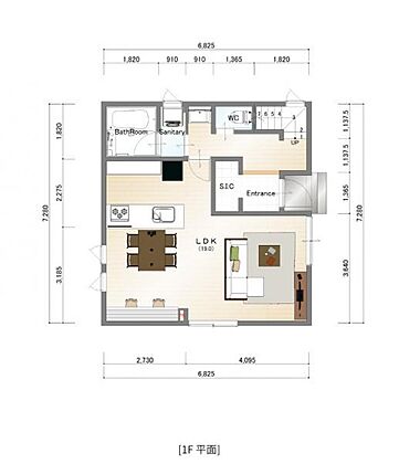 1階 建物プラン例 建物価格:2390万円 建物面積:93m2