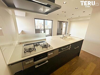 ペニンシュラキッチンなので、リビングダイニングに居る家族と会話をしながらお料理できます♪