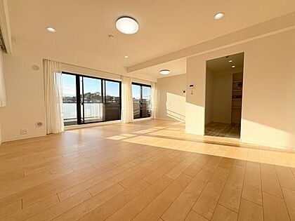 19.6帖の広々としたLDK。南西向きにつき日当たり良好。最寄りのバス停「麻生高校前」まで徒歩1分。