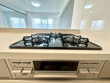 《キッチン・三口ガスコンロ》 ■同時調理で時短が叶う3口ガスコンロ。グリル付きで料理の幅も広がります。