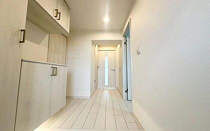 《玄関》 ■玄関を開けると、エントランスホールがお出迎え。上がりがまちやシューズボックスがゆったりと構え、心地よさに包まれます。