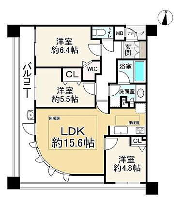 | 設備・サービス | ●床暖房 ●追焚機能 ●浴室乾燥機 ●ウォークインクローゼット ●エレベーター |