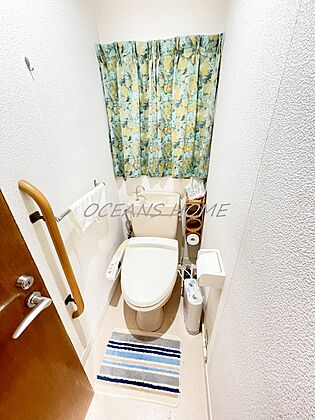 いつでもあたたかく快適な温水洗浄機能付きの1階トイレは、手摺や小窓付き♪