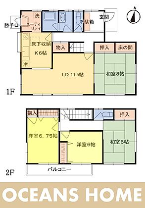 2階6帖和室です。和室は湿気の多い時期にも涼しく過ごすことができます。