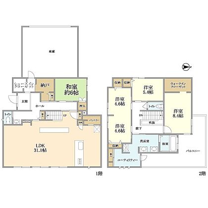 ガレージ2台+並列3台駐車可能!(車種による。)愛車を目の届く場所における安心感がここにあります。