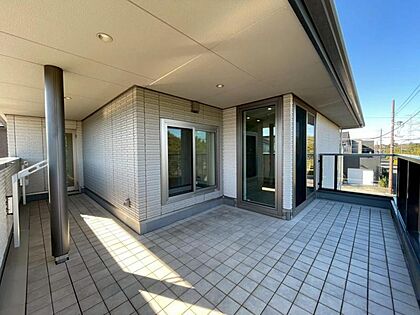 ランドリースペース、寝室、浴室と繋がるバルコニー。チェアを置いて風を感じられる、ゆとりの広さです。