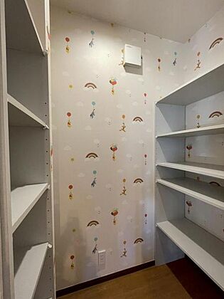 食材や調味料のストックに便利なパントリー。非常用食品の収納にも。