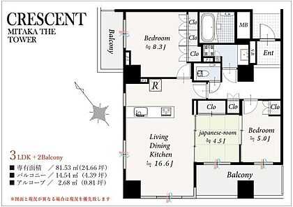 本物件では約14.54平米のダブルバルコニーがご利用いただけます。180度のパノラマが魅せる解放感ある本景色は、まるで「空と街」のオーケストラ。自宅に居ながら都会の喧騒を忘れさせてくれるでしょう。
