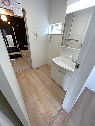 ゆったりとした洗面脱衣所♪はしゃぐお子さまとの着替えも問題なしです♪ドラム式洗濯機も余裕で設置できる広さです♪