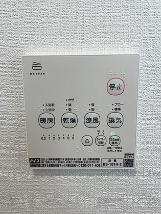 浴室乾燥機は「暖房・乾燥・涼風・換気」の4つの機能が付いています♪梅雨の時期には洗濯物干しにも大活躍します♪