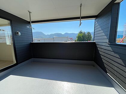 南向きのバルコニーはお布団も干せるゆったりとした大きさです♪椅子や机を置いて読書も楽しめます♪オプションで窓も設置可能です♪