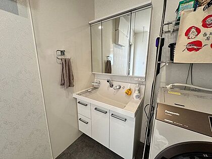 ご家族並んで朝の準備もスムーズにできるワイドなつくりの洗面台