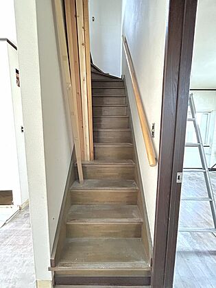 【9/1リフォーム中】階段です。安全面にも配慮して手すり交換、すべり止め設置を行います。