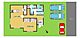 間取り図です。対面キッチンのLDK、居室4部屋の使いやすい間取りです。風呂・洗面1坪。2階にもトイレがあります。