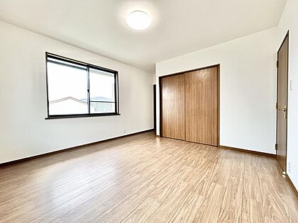 【リフォーム済】2階8.5帖洋室です。ウォークインクローゼットがあるお部屋です。床はクッションフロア張り、天井・壁のクロス張替え、照明交換を行います。