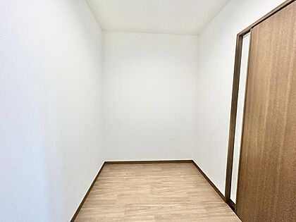 【リフォーム済】キッチン横の収納です。床はフロアタイル張り、天井・壁のクロス張替えを行いました。