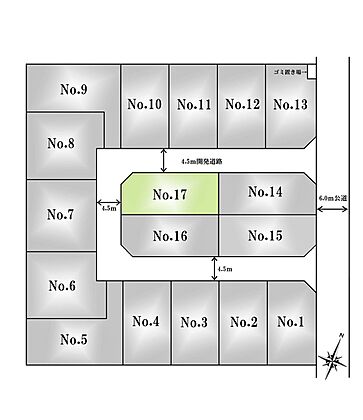 区画図:全17区画:敷地を無駄なく活用できる整った区画。