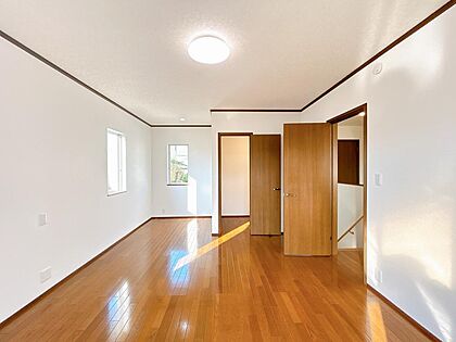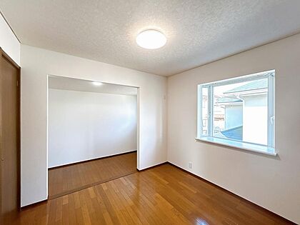 【リフォーム済】2階約7.5帖の洋室です。主寝室にもおすすめです。窓が大きく日がよく入ります。収納スペースもありますのでお洋服をたくさんお持ちの方も安心ですね。床クリーニング、クロス張替を行いました。