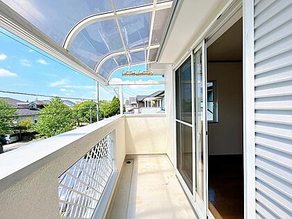 【リフォーム済】バルコニー。南向きで日が当たるのでお天気のいい日に洗濯物を気持ちよく干すことができます。洗浄を行いました。