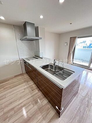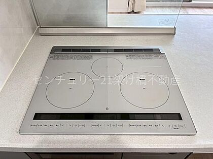 【キッチン】リビングに対面のシステムキッチン採用です。IHクッキングヒーターはお手入れも楽々♪