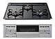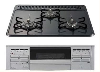 角を極力少なくした、お手入れのしやすいコンロ。3口全てに温度センサーが付き、高温炒め機能付き(右コンロ)。片面焼きグリルも搭載しています。消し忘れ消火機能付き、安全で機能的です。