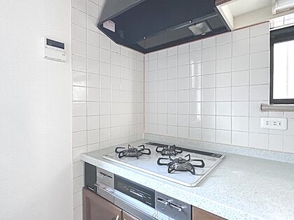 【三口コンロ】奥さま目線で考え、調理に重宝する三口コンロをシステムキッチンに採用、ワイドな洗い場も設けも野菜や食器を洗うのを便利にしました。