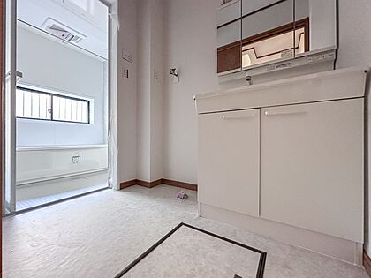 【脱衣所】洗面所は小さなプライベートスペース。歯磨き、洗顔と毎日施す個人空間。